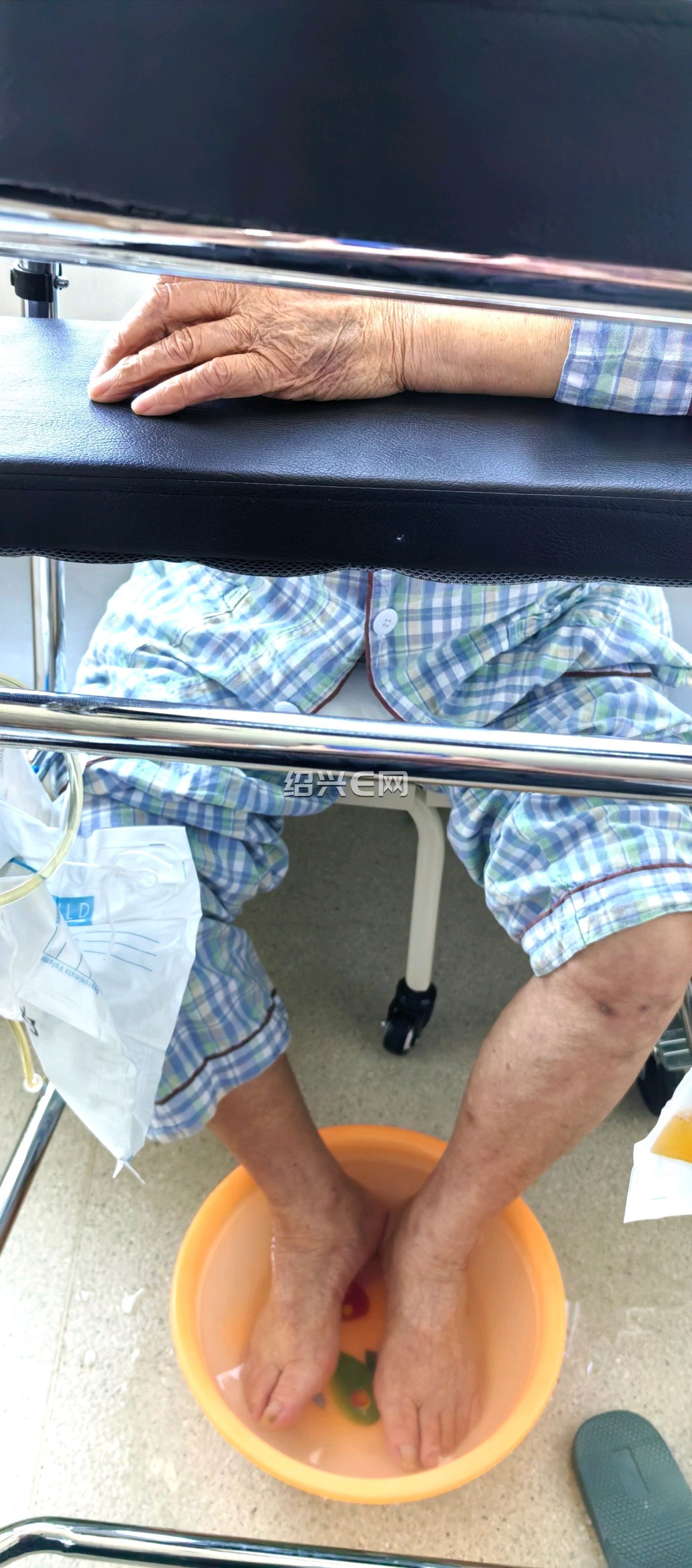 a秋水涟漪:一早到,给父亲把床单枕头换了,给父亲擦洗了身子,换上干净的病号服。父亲可以坐起来了,打了水让双脚在盆子里浸泡一下,想想几天之前我们洗脚还需在床上洗,这是多大的进步呀!