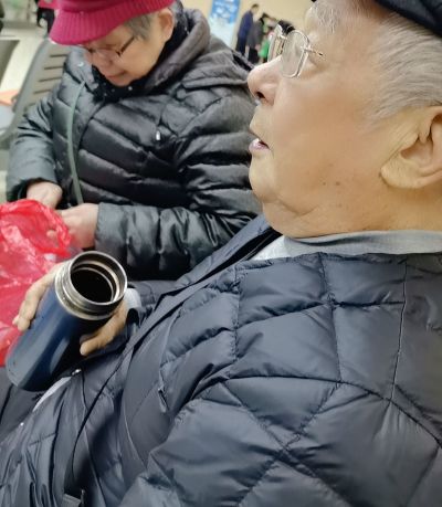a秋水涟漪:昨晚九点多就睡着了,四点多醒来看了一遍帖子,居然又睡着了,醒来已是7:18分。今天跟老爸说好陪他去医院配药,我连忙一骨碌起来做早餐,然后唤醒他,急匆匆8点出门,赶到医院8:10分,我想着刚够父亲的挂号时间,谁知见到老爸才知道,我还以为刚赶上,他却早已看过医生配好药了,只是母亲让老爸再歇歇,坐着喝开水。母亲递给我她自己剥的桂圆肉与几颗荔枝干,让我带回家吃,照片里母亲正在给我剥荔枝干呢。
