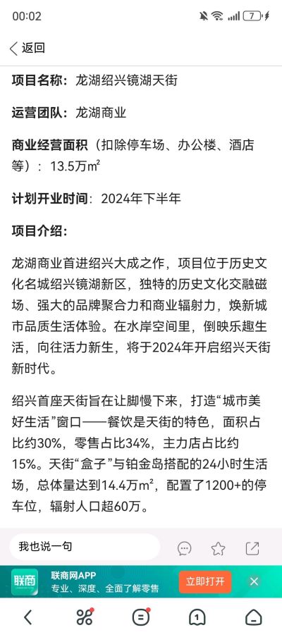 :每个商业体商业面积公布都包括停车场的,苏宁广场26万,龙湖13.4万,银泰12.3万,柯桥万达17万,星隆城18万,照你的说法,天街和龙湖相差2万多方,店铺品牌多了一倍都不止,停车位相差一倍,你自己想想逻辑成立吗?不用多说了,反正大半年时间开业可以证明了。...(2025-10-12 15:30)
