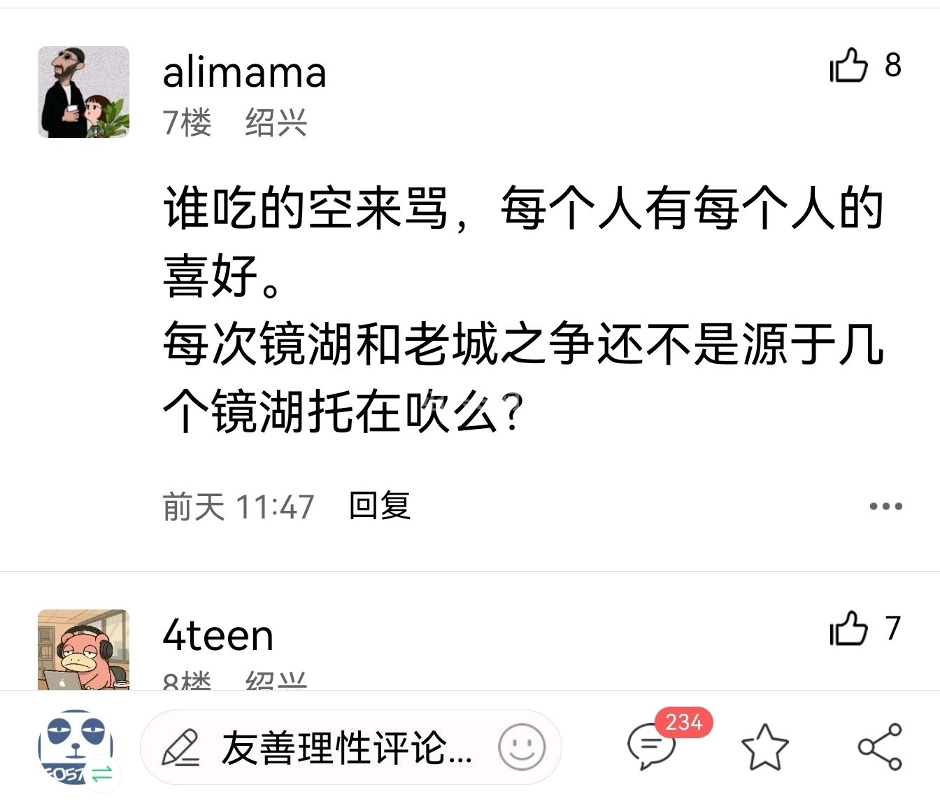 我看是7楼开始阴阳怪气,说镜湖好是镜湖托,那你们都是什么托?老城托,迪荡托,城东城西城南托?其他贴子里说老城好迪荡好你们怎么不去喷?不去说别人托?