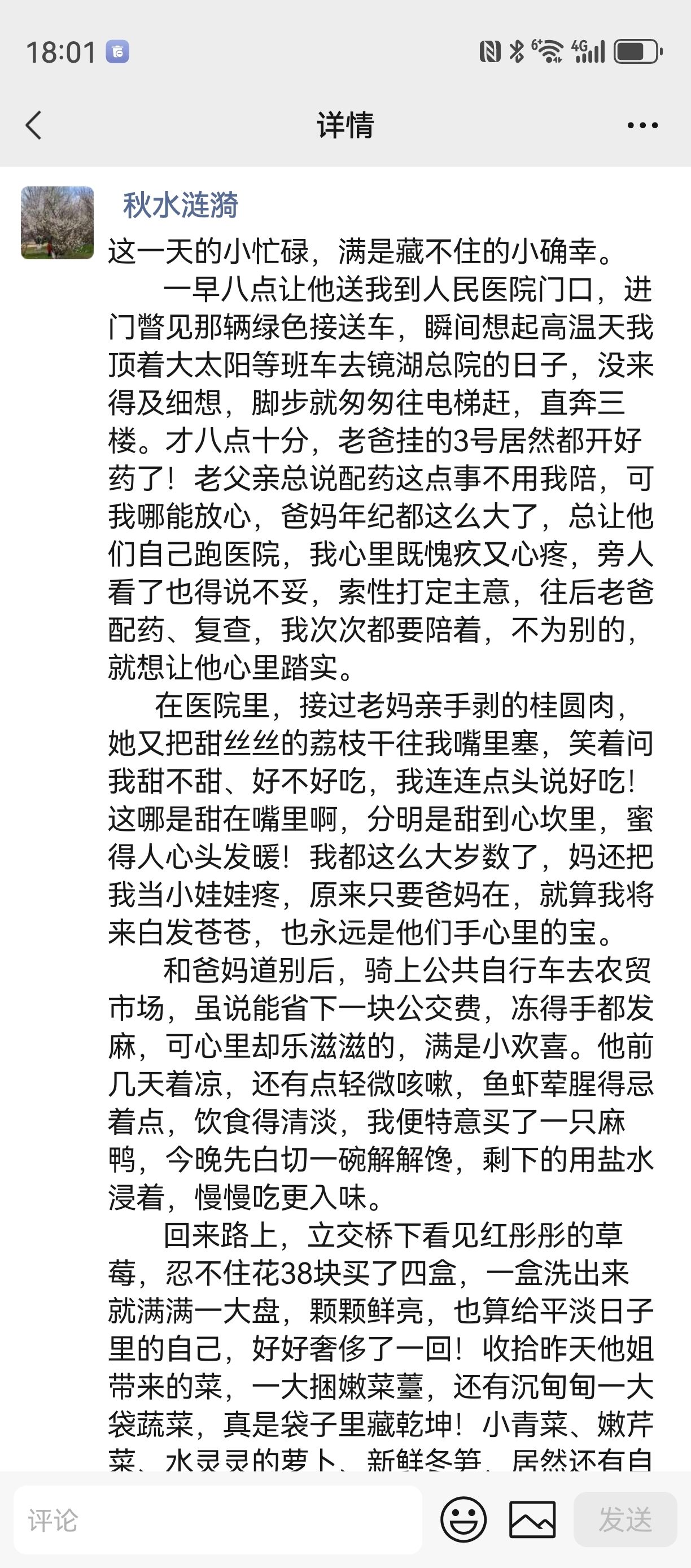 a秋水涟漪:一早醒来静静躺着,花了四十多分钟细细品读帖子里的文字与照片。