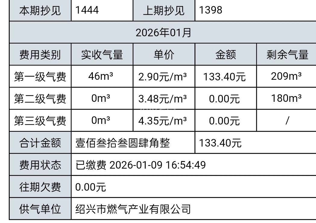 管道燃气两个月一家又是烧饭又是洗澡,以前一桶装一个月光烧饭就用光了,如果洗澡也烧,估计一桶用半个月。
