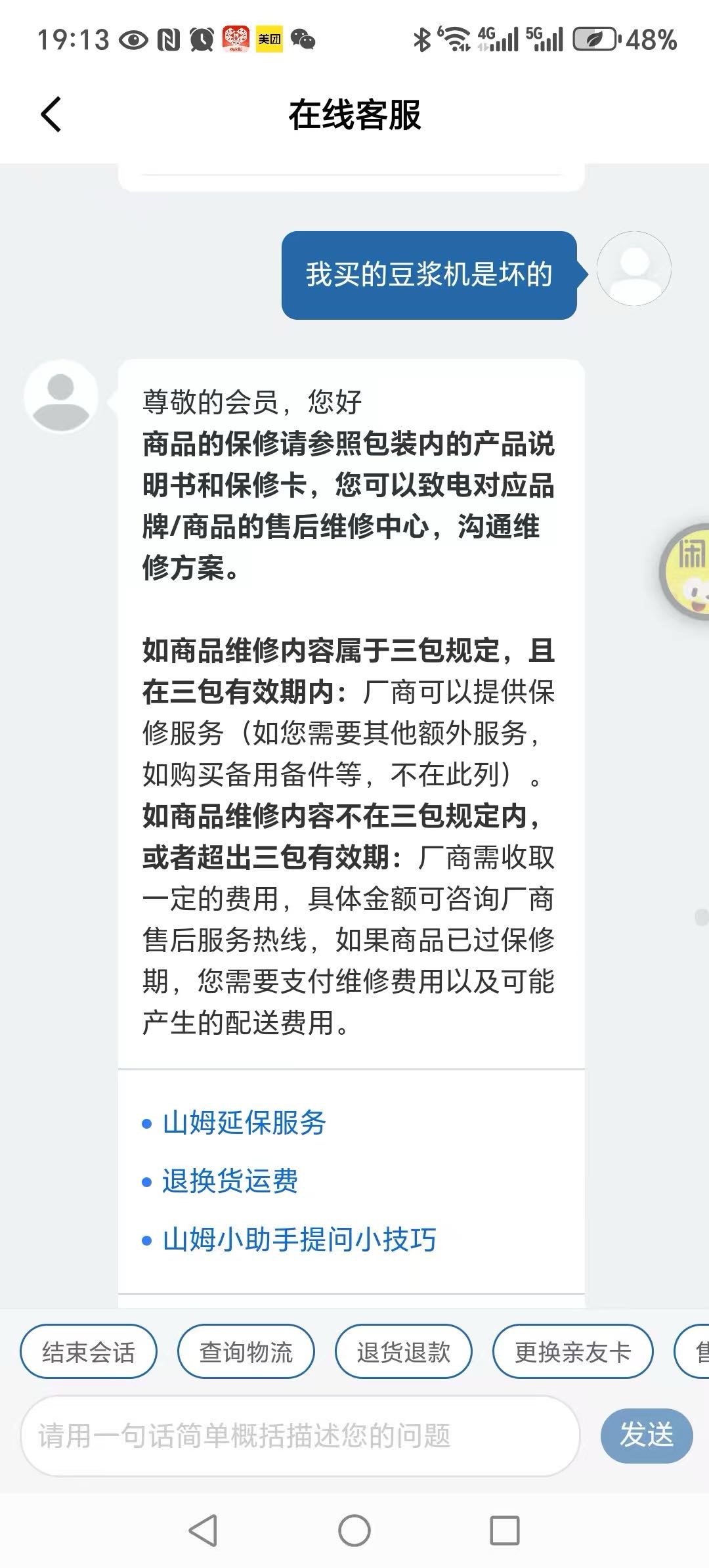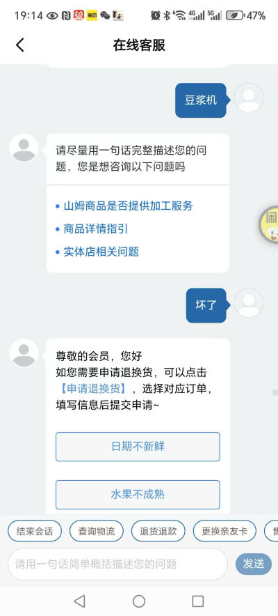 在山姆网店买了一个豆浆机 用了2月坏了 找山姆说网上处理 网上打电话说山姆到期了处理不了 给了厂家电话 厂家电话打了几天都是无人接听 每次打山姆客服都是记录记录就是不处理,这么大个店居然售后这么差劲? 以后不会在山姆购物了
