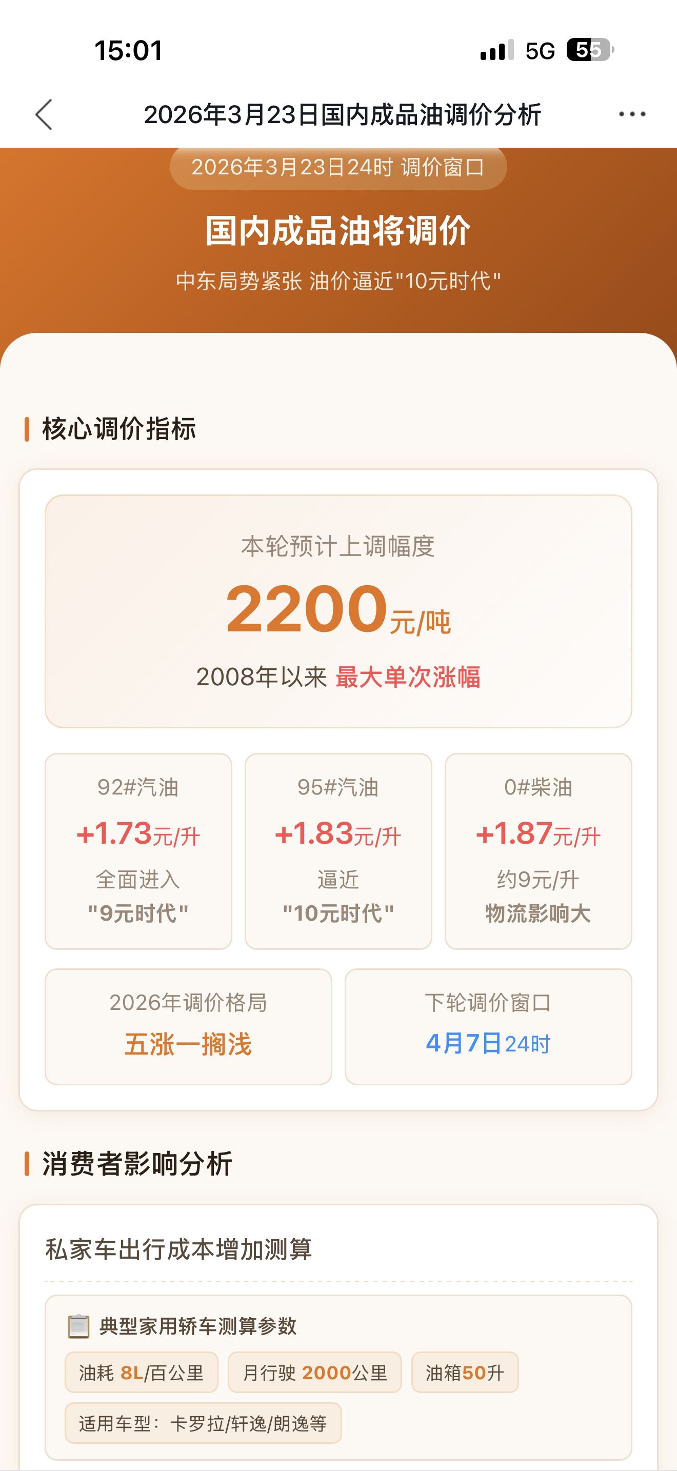 油价涨价的价格出来了,比预期的低了些,只涨1元不到