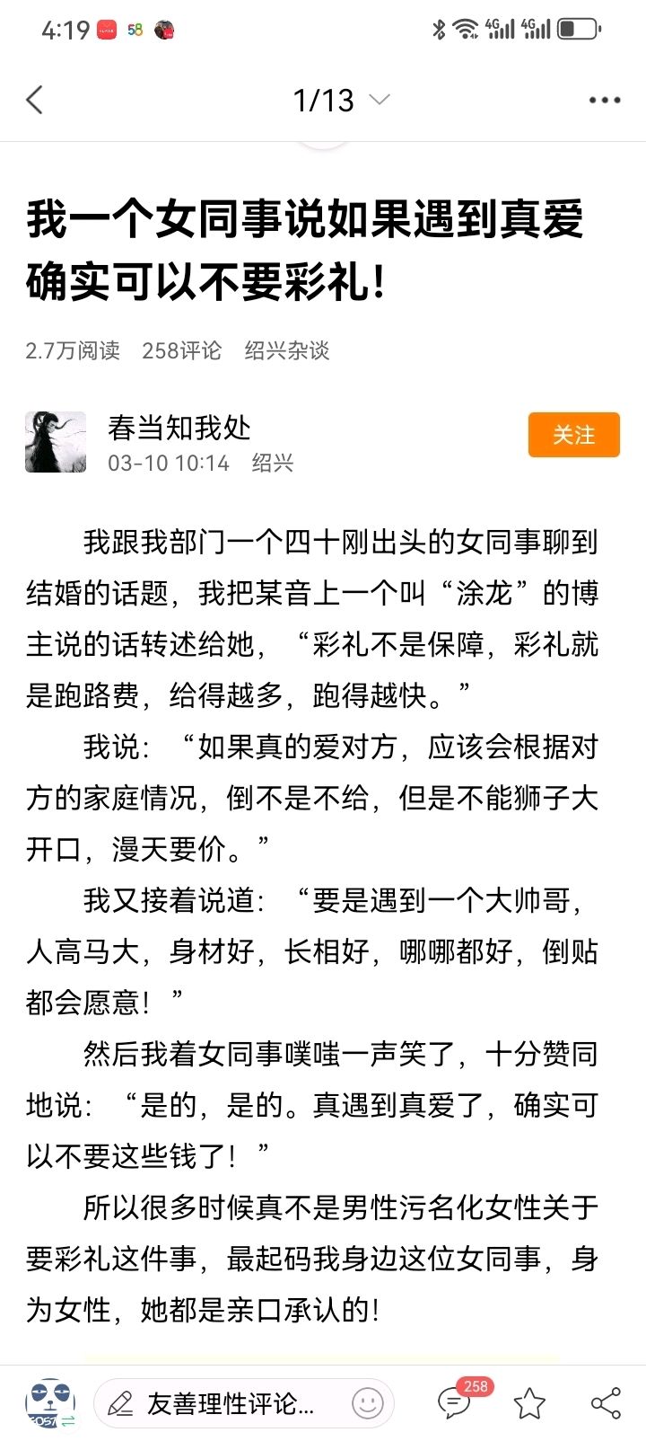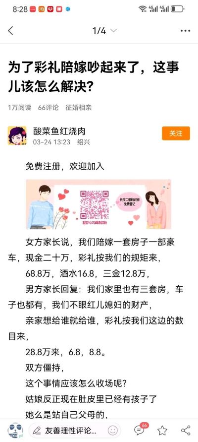 :你是没见过18w彩礼都给娘家的,办酒也男方办的,女方一个子儿都不掏的,金项链也没给男方买。反正我身边就有一个娶了这种老婆,有什么办法,年纪大了,女生是纺织厂做挡车工(2026-04-02 15:46)