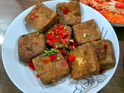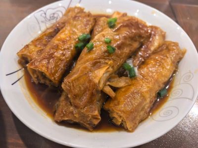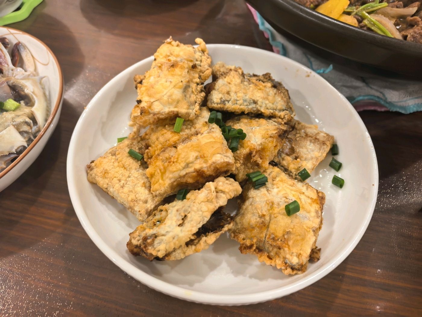 9 月 27 日晚餐记录,黄金脆带鱼。白切秋鸭。曹娥江小黄蚬。茭白小炒。自己卤的臭豆腐,再炸一下又香又臭。豆腐皮卷。呛蟹。道墟羊肉。
