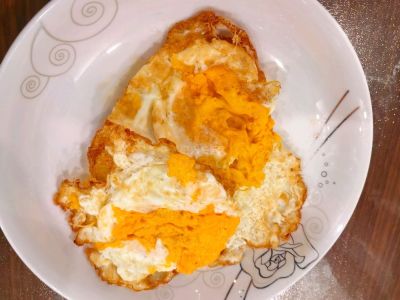 10 月 16 日早餐,酱蒸三丁,煎蛋。酱蒸三丁口味不错,省时省力。