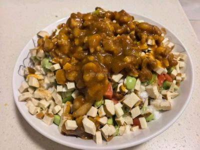 炒米饭还是可以的吧,不比外面店里的差。鸡肉腐竹煲,适合冬天吃,这次还加了千张结。做菜只用盐,味精,酱油。其他的调味料基本不用。