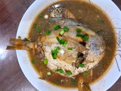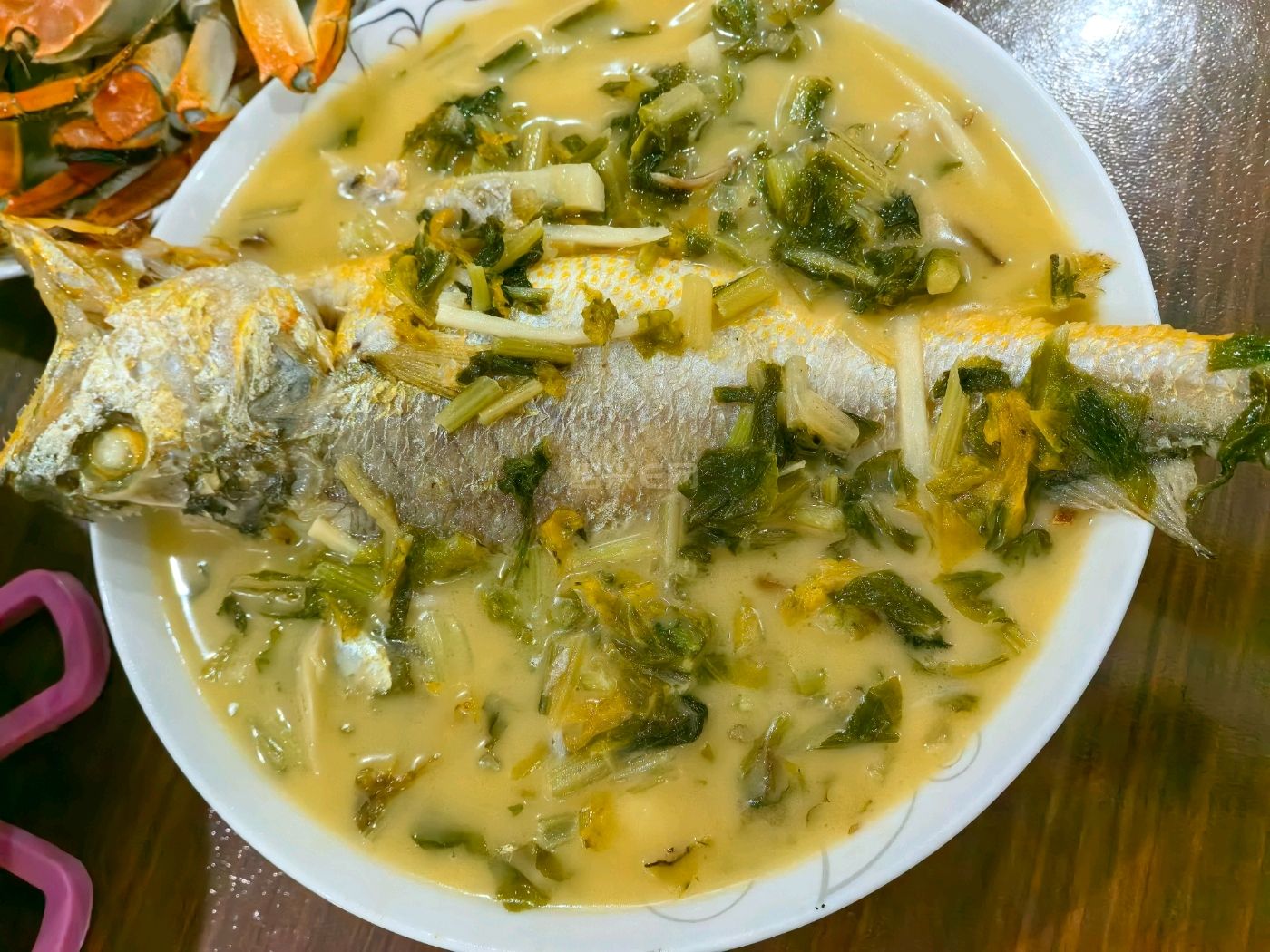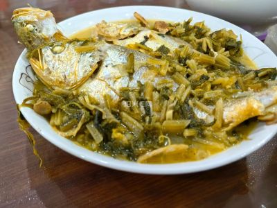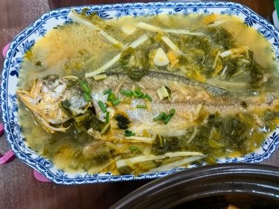 10 月 19 日晚餐,咸菜烧黄鱼,最好吃,很鲜,煮出来的汤也呈奶白色。