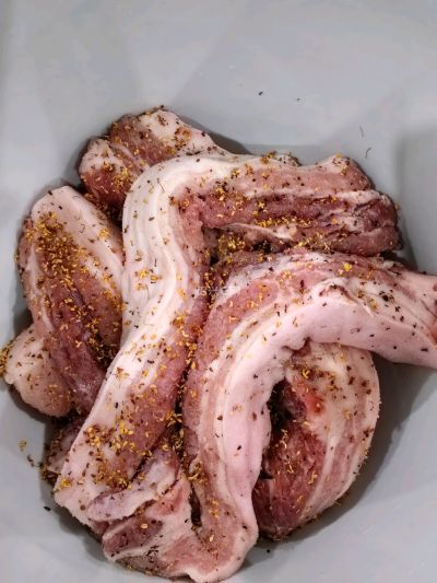 年前做的最后一批腊肉,共 8 条较小的五花肉。五花肉是永辉超市买的,12.5 元一斤,共 80 多元。
