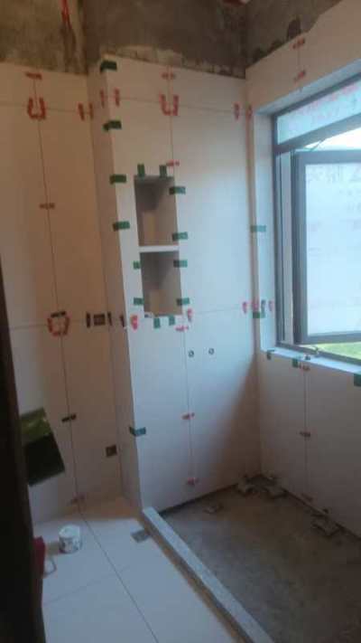 : 瓷砖从九月二号开始贴的,到十一月十号贴好,整整贴了39天,为了贴砖的质量,都是懂师傅一个人贴的,贴大砖的时候他自己叫了帮手。在整个贴砖过程中还不错,这点做得很好,地漏做了回字形,下水快。卫生间还给我加做了壁龛
