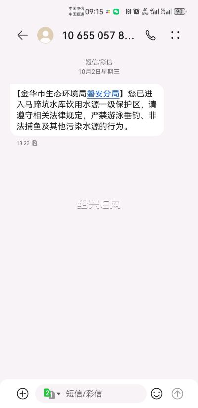 就是这个原因,我国庆去磐安路过水库,磐安那边发的短信