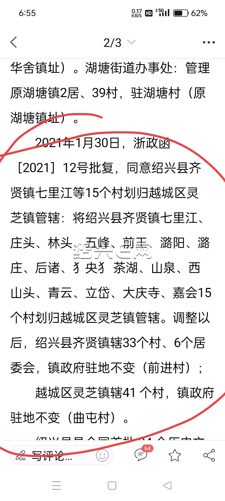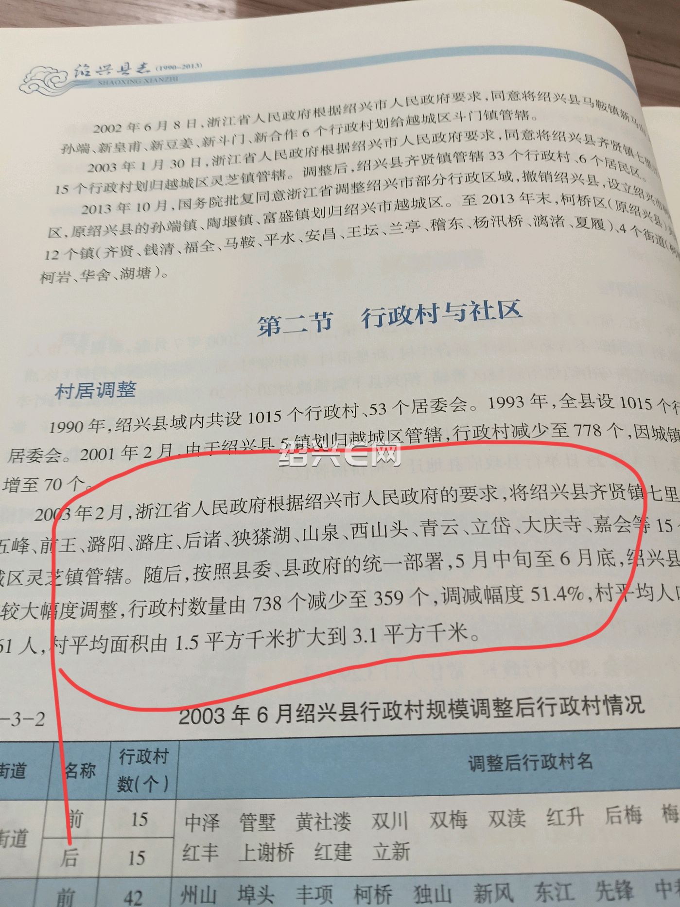 从齐贤镇划15个行政村归灵芝镇的时间点有些出入(图2是我从《绍兴县志》看到的)。