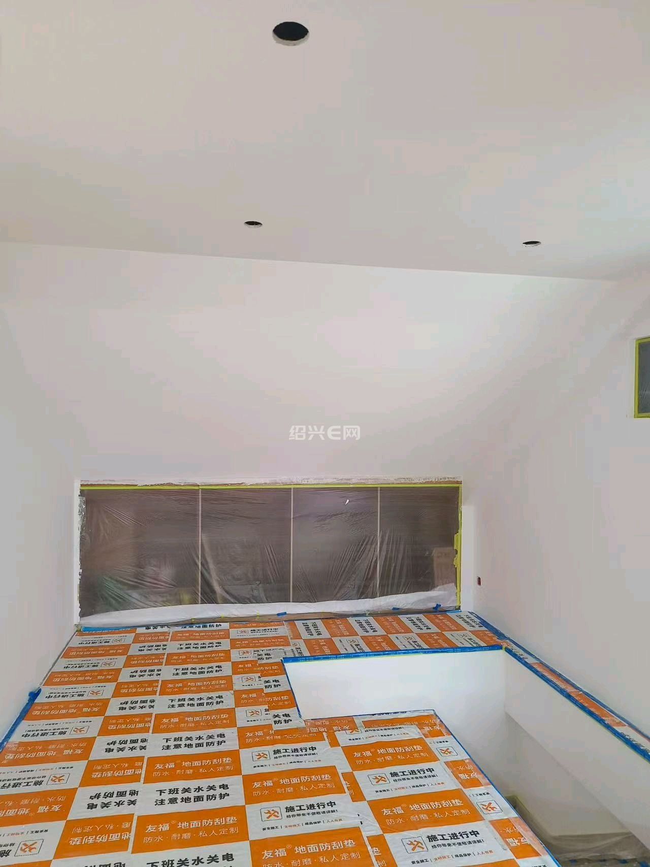 油漆喷顶完成,先晾一星期不开窗,接下来美缝、木地板要安排。