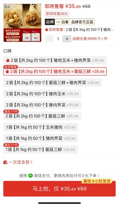 多多买菜、以前的每美团优选,蒸煎饺一袋1kg,也就9.9元。