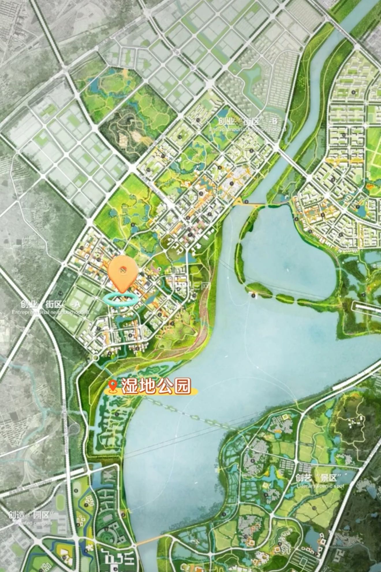昂桑湖反而离柯桥区近,除了湖东吸引越城区的人口,其它三面都要重点吸引柯桥区的人口过来,这样才能填满镜湖!