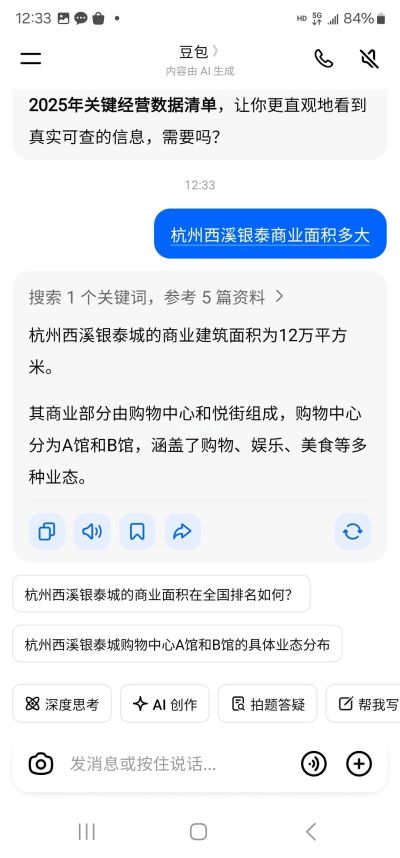 西溪银泰豆包说12万,杭州万象城官方招商发布会24万方,豆包说27万方,豆包是浆糊做的,你和豆包是一样的