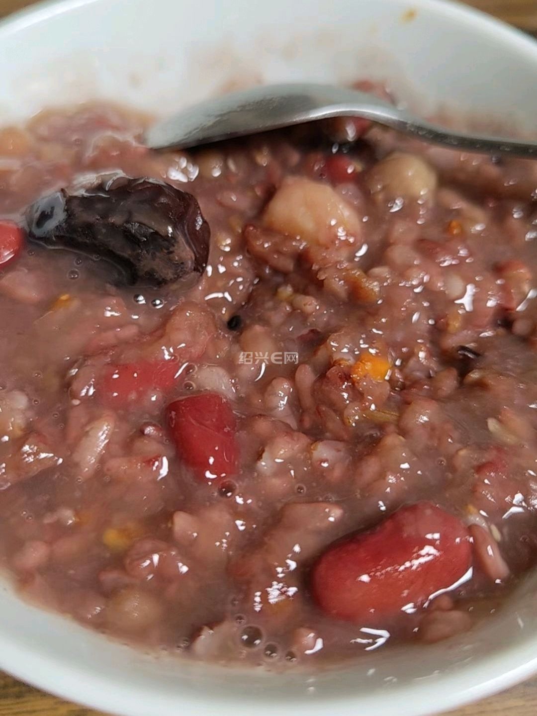腊八节就应该喝腊八粥,今天好在不下雨,自己家里烧,外面领的也挺好的