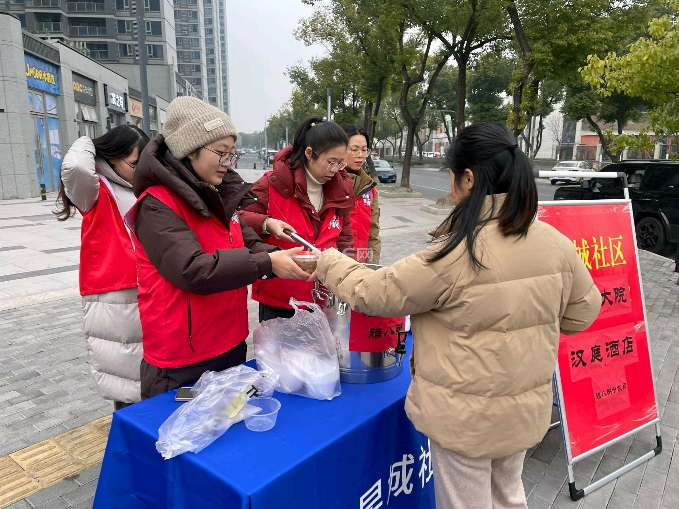 家住钱清,早上路过金帝星隆城,看到他们在发腊八粥,就去领了一碗。味道一般,但热乎,吃完以后就去上班了。