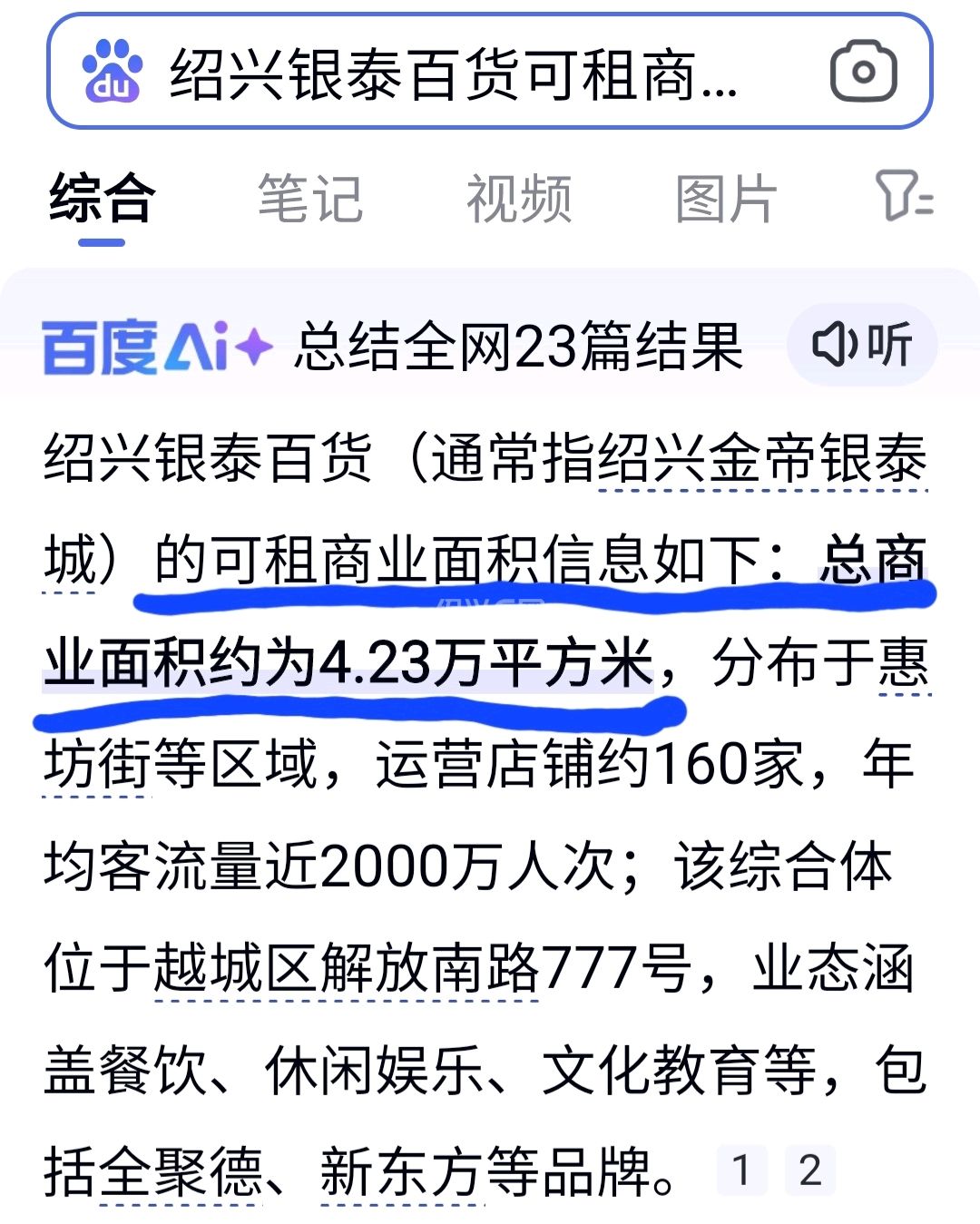 :结束了,看苏宁官方发的就行了,实际应该没18万方的 因为可租只有10万,龙湖天街可租大概7万8左右,苏宁实际17万多点 大约是柯桥万达或者世贸广场的体量[图片](2026-01-16 16:51)