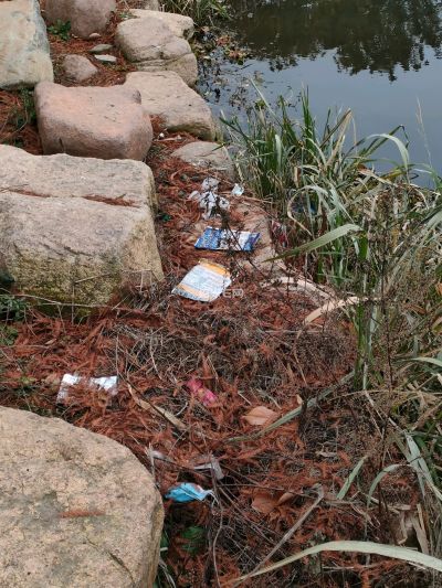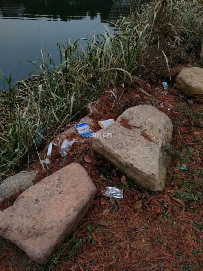 公园河边钓鱼人留下的“杰作”