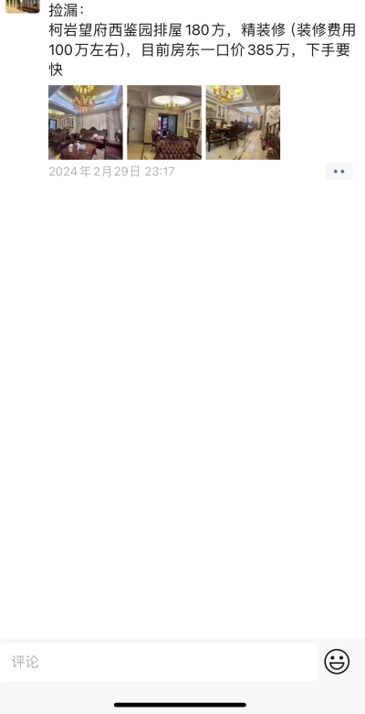 awper:排屋实际成交价 也就 小区平均挂牌价的7-8折[表情] (2024-03-06 13:37)