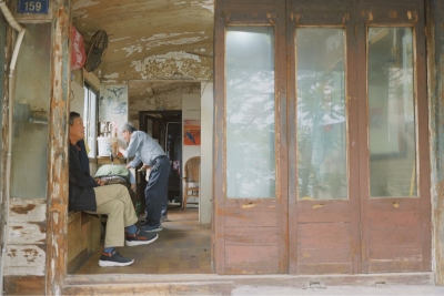 5月16日是《楝树花开》在绍兴放映的第一天,我买了第一场的票,成为第一名观众。而电影一开头男女主角第一次见面的地方就是皋埠老街桥头的这家理发店。