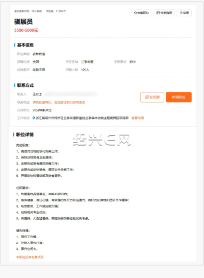 只要初中学历!刚刚,兰亭森林动物王国大招100人!