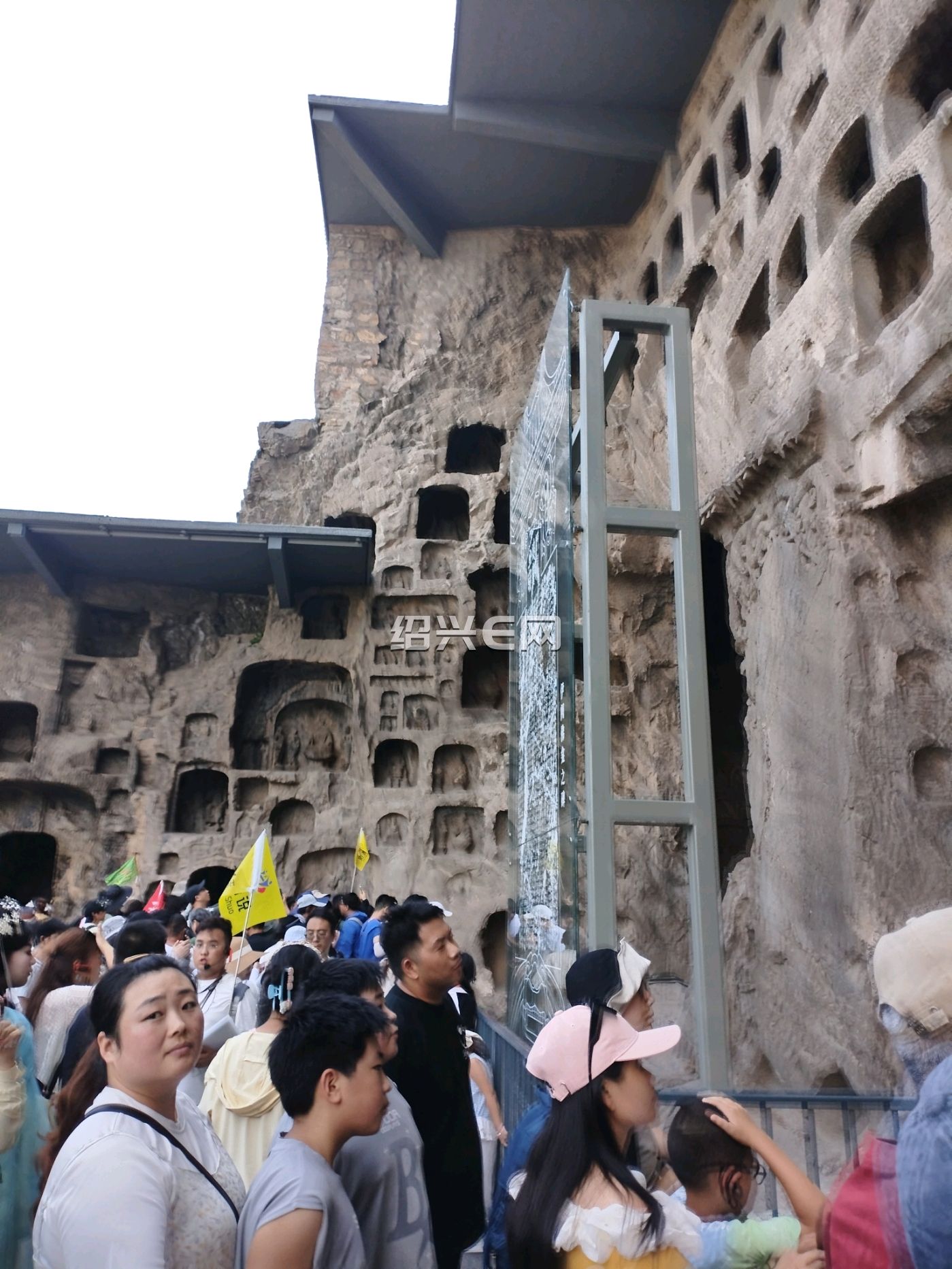 我们按照事先做足的游程路线功课,顺路随人流游览这千古的《龙门石窟》景色。我们步行于这凹凸不平的石板路,远眺这蜂峦秀丽,踠蜒迭翠的山景,感到尤为心旷神怡。慢步跨上沿着千佛石像修筑的木板扶栏窄道,满目尽是数十道架筑于悬岩峭壁的红棕色网格式通径,如一幅古朴典雅的神怡画卷,点缀着景区的华光与艳美。目视这嵌雕于千百石窟中的造像,真是千姿百态,各有风姿。