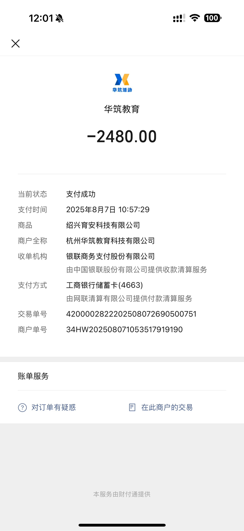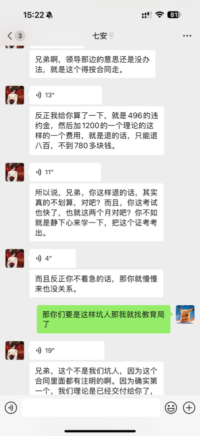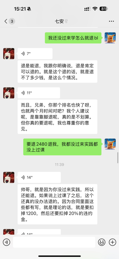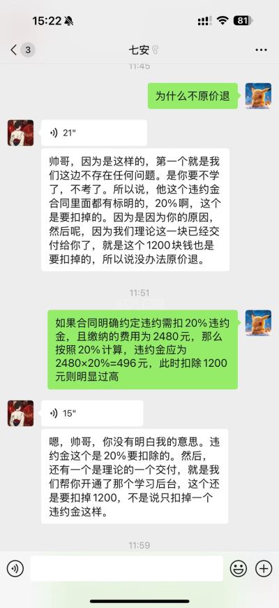 2025年8月7日在华筑教育交了2480元报名消控证考试,但是我现在不想考试培训了,他们说违约金要付20%但是我也没上课,就给我发一个电子的理论资料,没上课还扣我这么多
