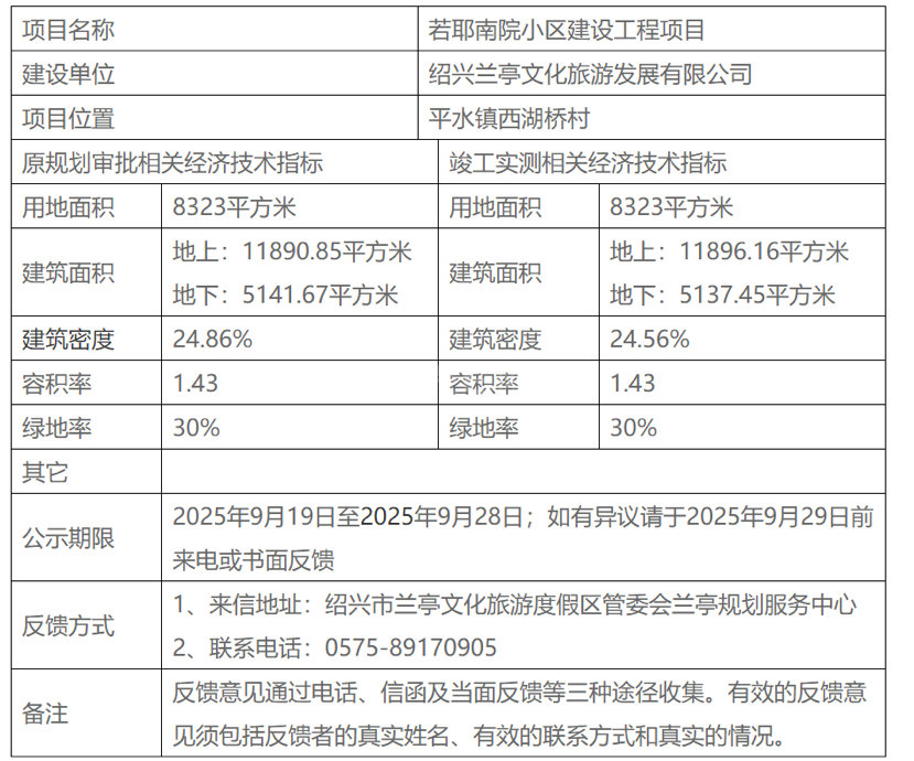9月9日,绍兴市自然资源和规划局柯桥分局发布了若耶南院小区建设工程项目竣工规划核验公示。