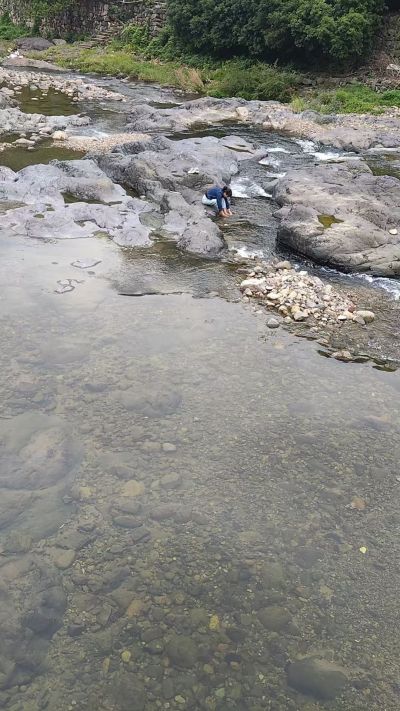 是的,还好我们是不花钱进去的,后来我们在小溪用大鎯头敲石震鱼,抓获了河虾和石斑鱼等