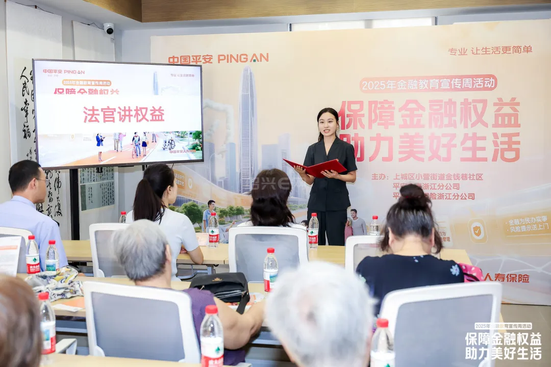 活动围绕“保障金融权益 助力美好生活”的主题展开,抓住了金融安全的“最后一公里”——广大社区居民,尤其是风险防范意识相对薄弱的老年群体。平安人寿浙江分公司副总经理谢娟表示:“公司以党建引领为核心,践行‘金融为民’使命,通过‘风险提示送上门’,联合金钱社区共同提升居民金融素养,增强风险防范意识,切实守护百姓‘钱袋子’。”现场,法官、民警、金融反诈志愿者组成“护老先锋队”,以“零距离”服务彰显适老助老温度。