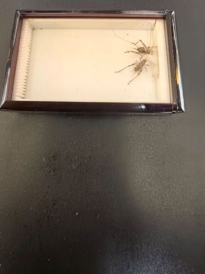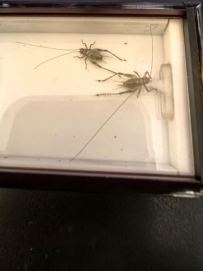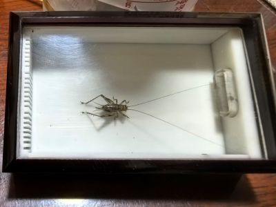 只听得一只在灌木丛中鸣叫,那里,可闻而不可及。来回查看,终于见着一只,那熟悉的金色翅膀,息在稍高的树杆上。于是轻轻移步上前,慢慢举手靠拢呈合围状,待虫儿已在掌杯之间,迅速扑罩,移近罩杯,独眼紧贴掌间开启的细缝观察,内有一虫,欣喜,未几,虫儿经瓮口入杯,Over。