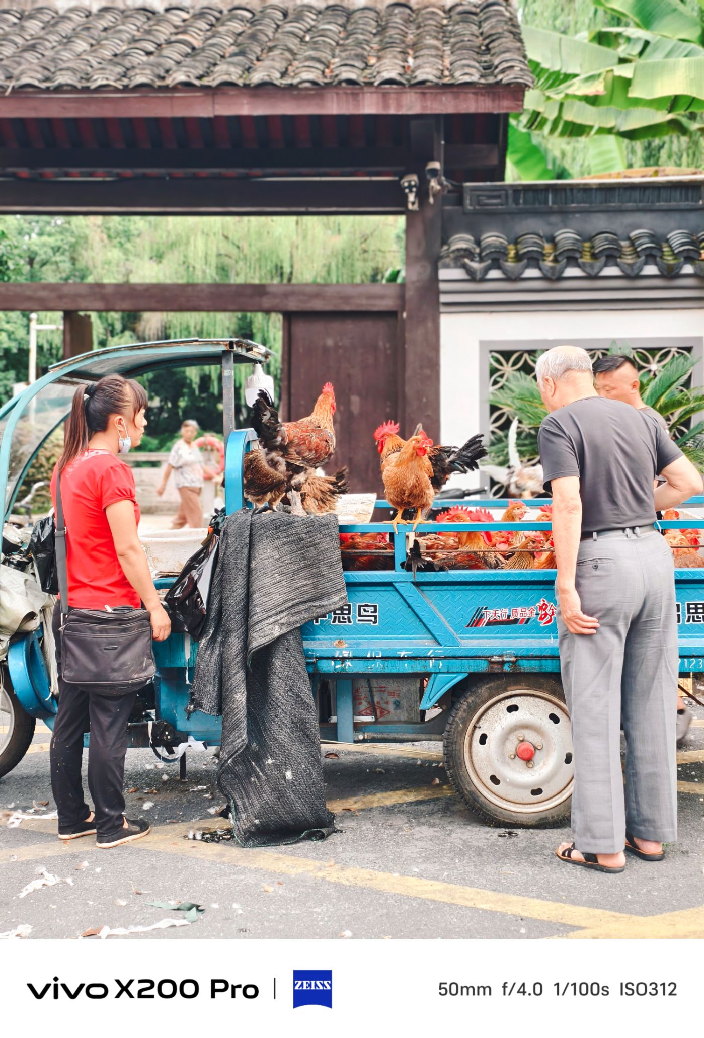三轮车上的鸡很听话