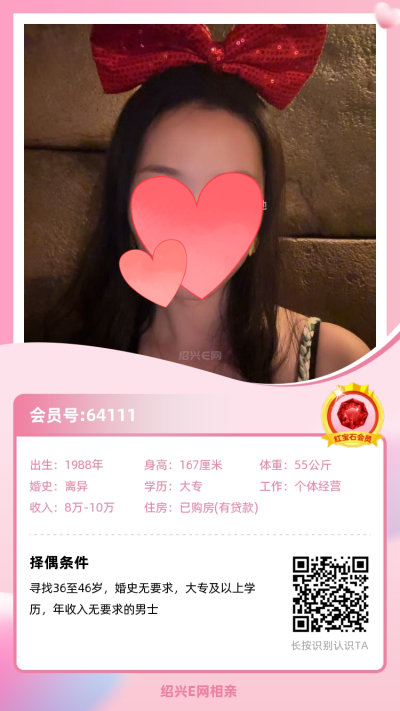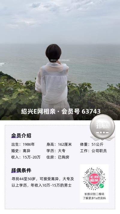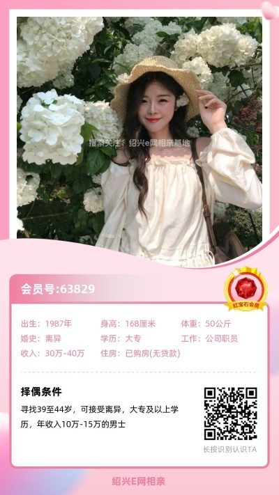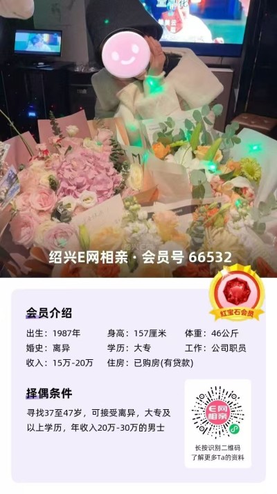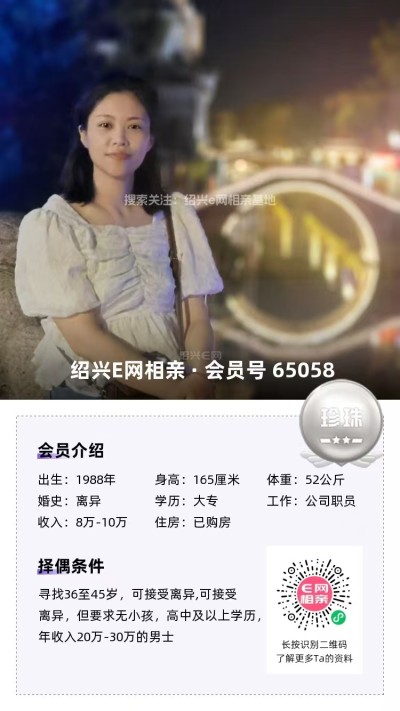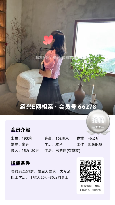 从事纺织行业多年,工作稳定,经济无忧在柯桥有全款房车,年收入50万以上