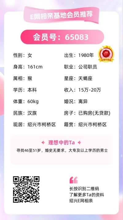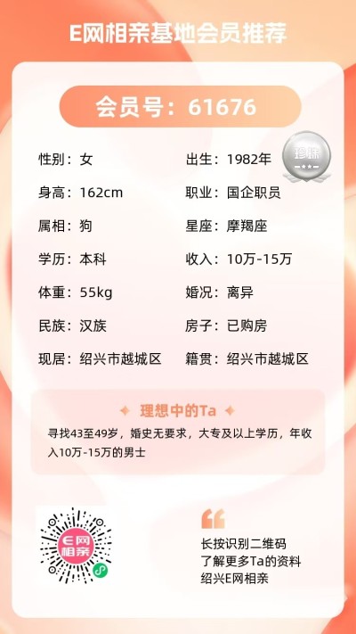 寻觅:44-50岁之间,身高168以上,有独立婚房的本地人。