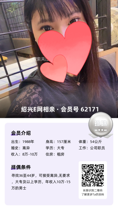 寻觅:47岁以下,婚史不限,身高170+,大专以上,相貌顺眼,