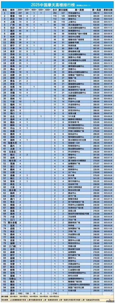 2025年全国高楼统计表