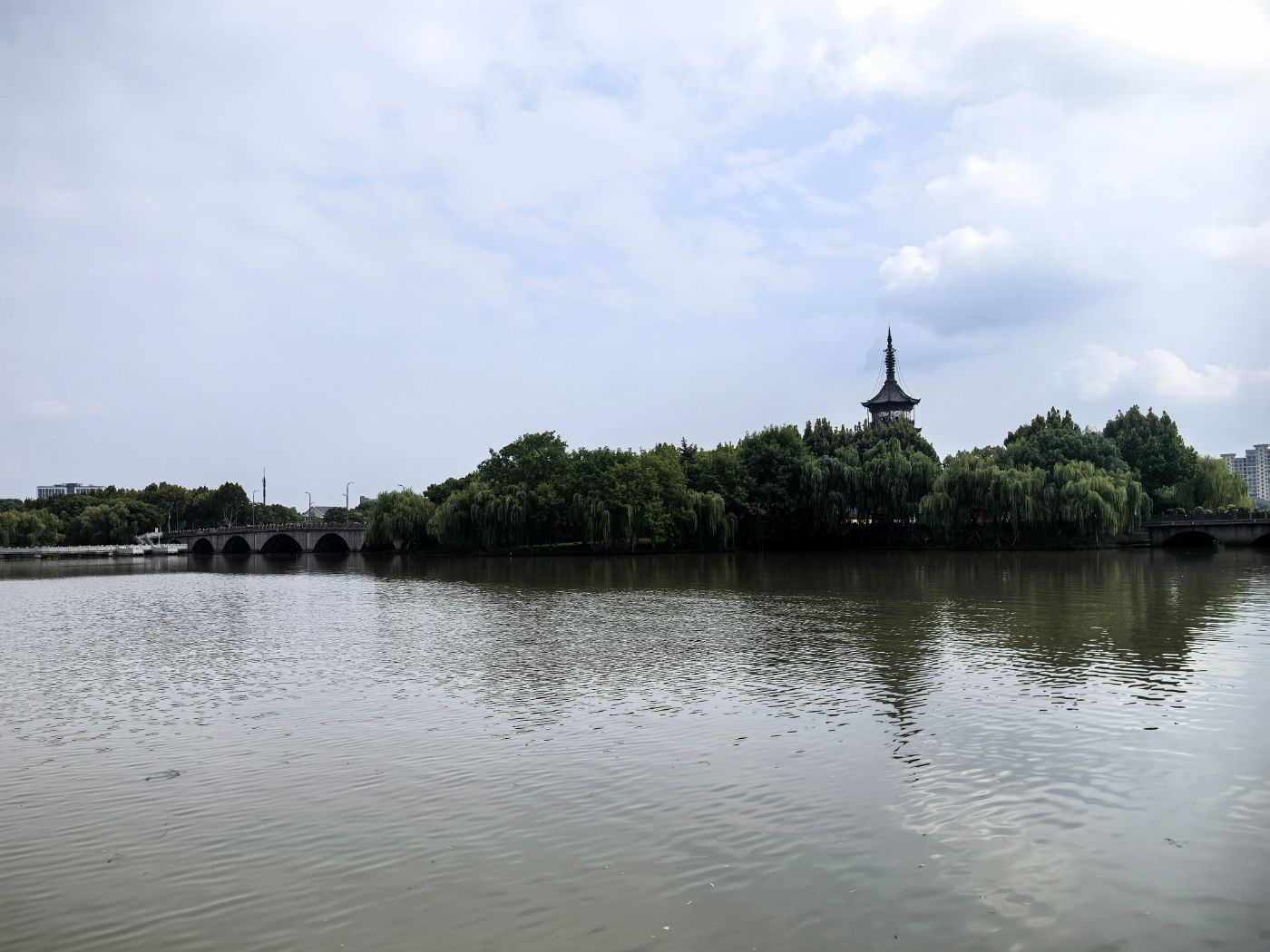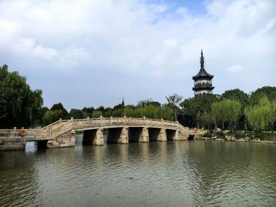 东湖名胜,塔有四百年历史,附近有寺庙。