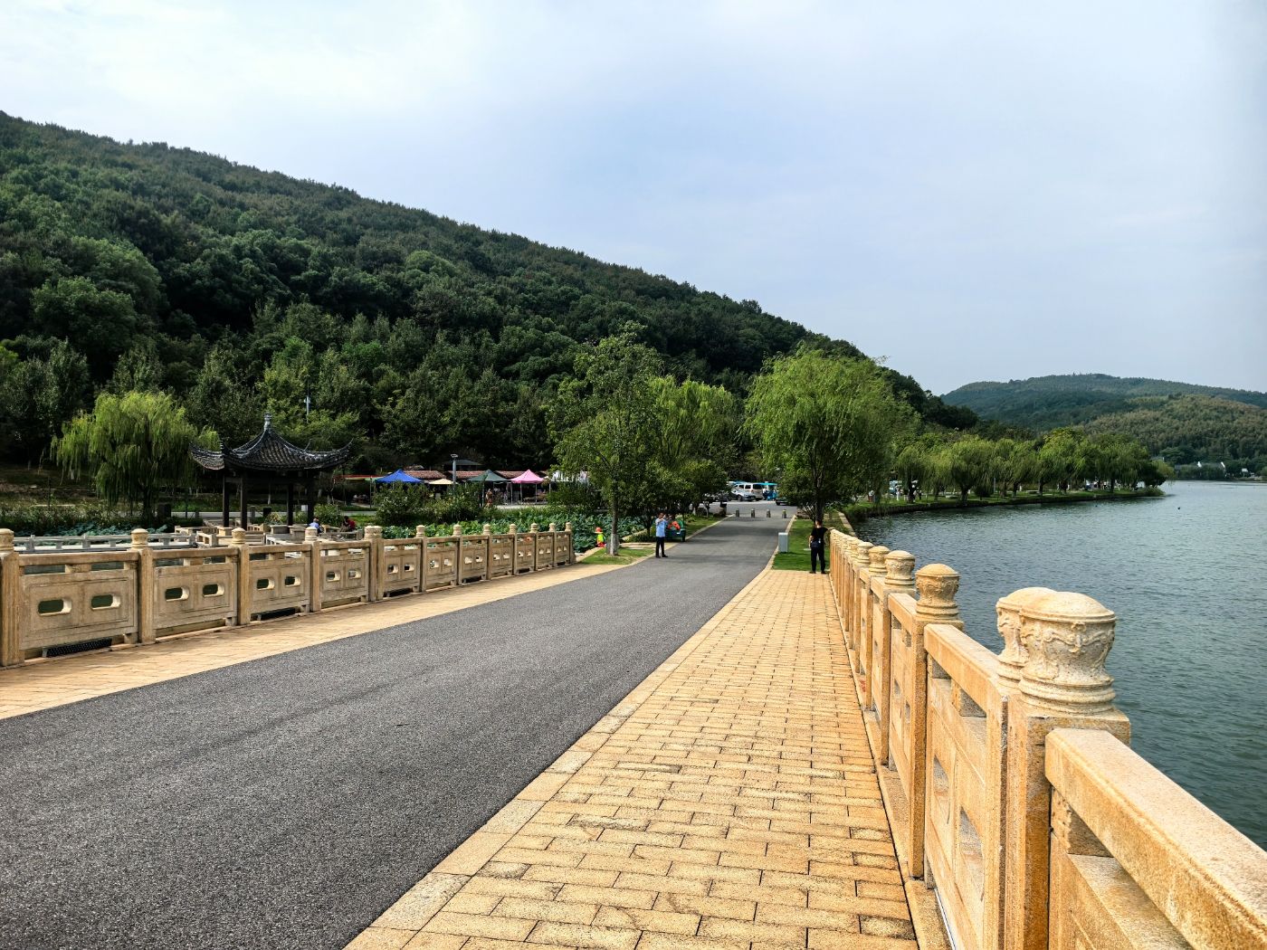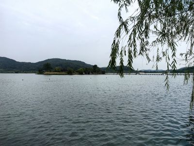 这名字取的,就因为湖中央东西走向有一缇把湖分南北二区?车可以入园,一小时免费。