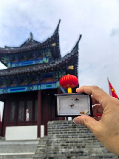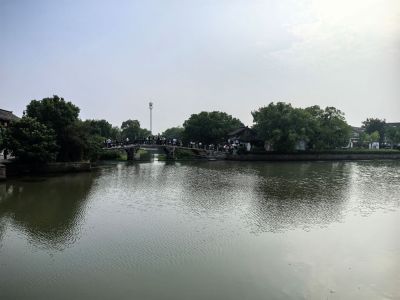 那是钱塘江边的海涂,远处还有好些人,都在赶海。