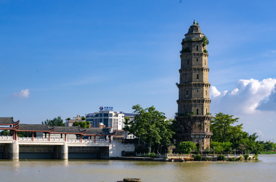 镇河的,这边韩江边上有这座这样的塔,下面两层是石结构,上面五层是砖。基本都是明朝时建的,500多年历史