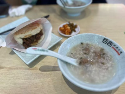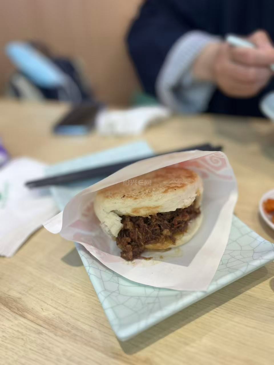 牛肉火烧是发面饼,不酥里面挺韧的。纯牛肉带着肥瘦,油油润润地吃着不干口;皮蛋瘦肉粥暖胃佳品落胃。