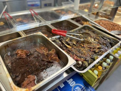 菜码罗列整齐,菜单黑板报醒目,无盲点。