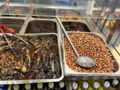 兰花干吸满料汁,酱色均匀,可惜味道太咸。