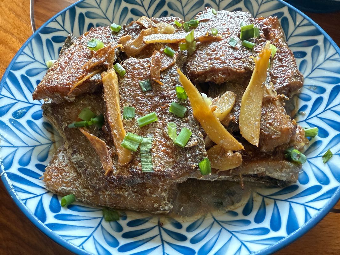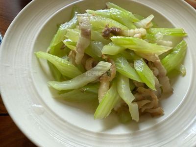 煎带鱼,西芹炒肉,醋溜土豆丝