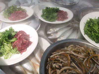 草虾88腰花大肠各65四季豆30,我毛估估。