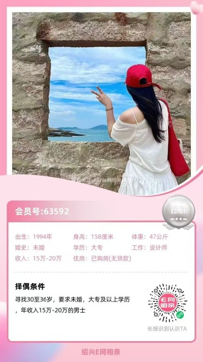 独生女,本科学历,设计师,杭州工作,住柯桥,年薪15w左右,有车。