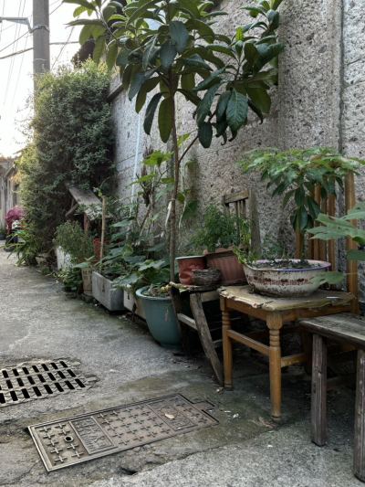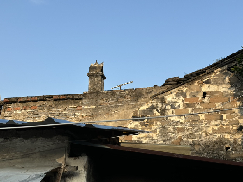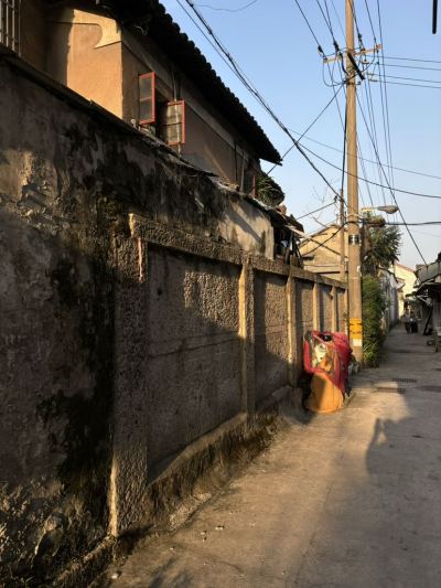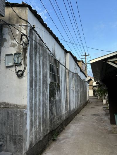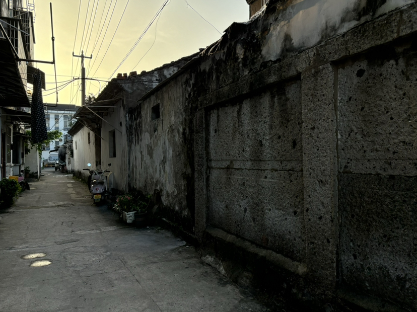 弄里有一排石销墙,给弄增添了许多的古韵和神秘色彩:墙的那边是什么?